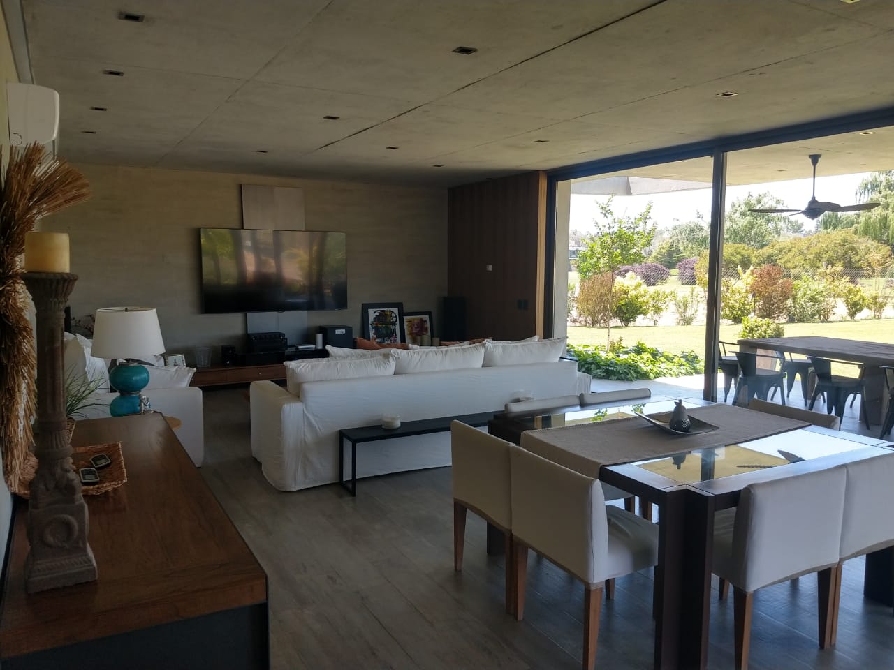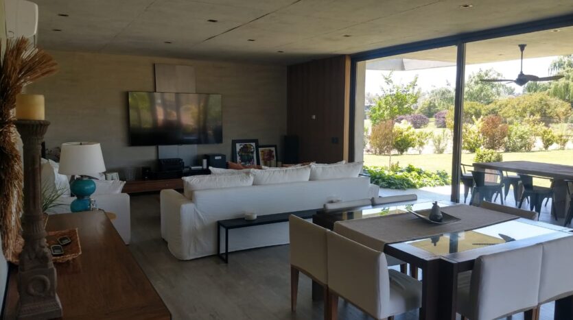 IMPONENTE LIVING/COMEDOR MUY LUMINOSO CON IMPORTANTES VISTAS A LA CANCHA DE GOLF CON SALIDA A EXTENSA GALERIA