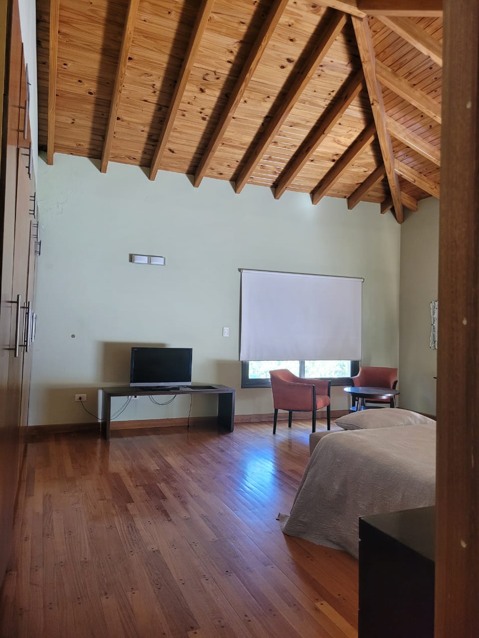 quincho muy amplio que incluye parrilla , barra y un baño.