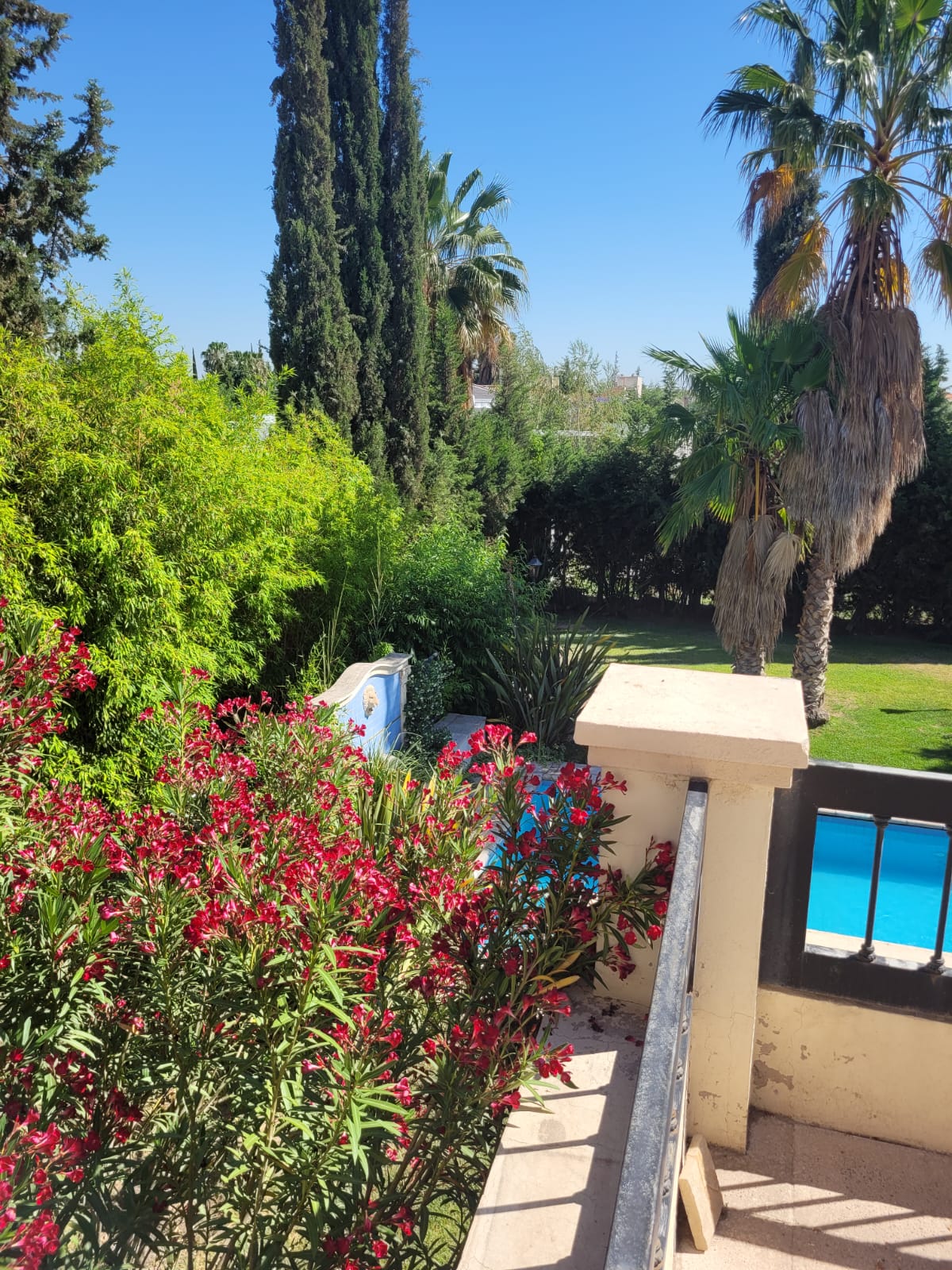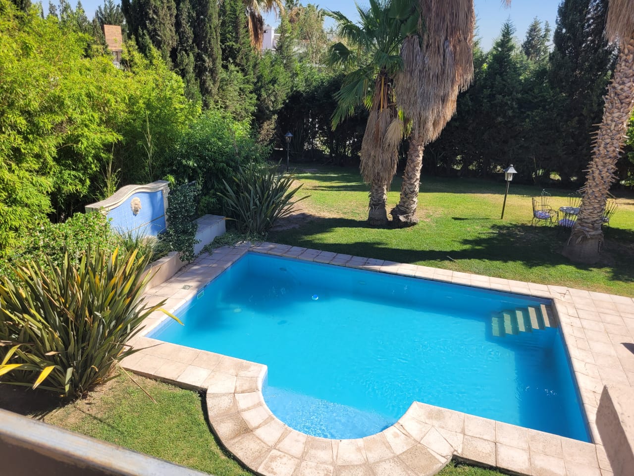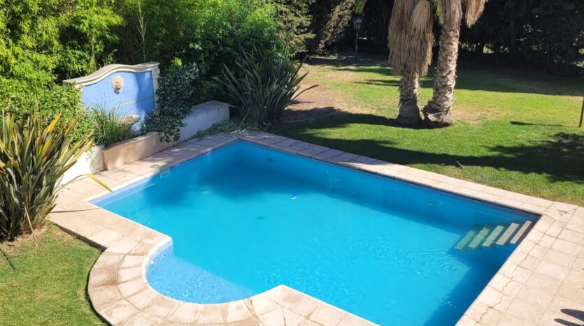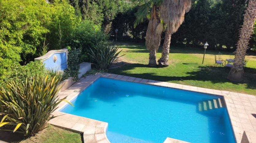 Calefacción central, cochera doble cubierta a la par, jardín con riego y piscina climatizada.